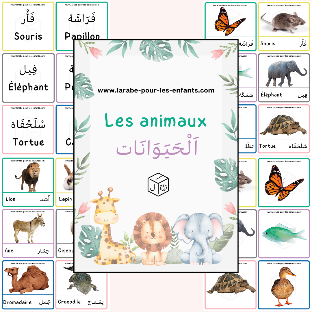 Ce support PDF contient le nécessaire pour imprimer 42 cartes de nomenclature animaux en bilingue arabe- français.